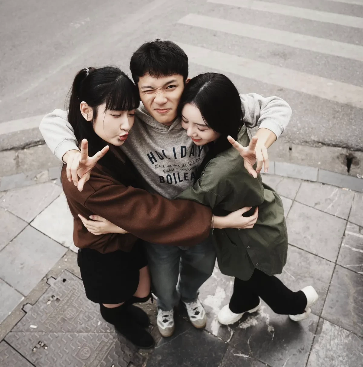 Trong Bước Chân Vào Đời, Sơn Tùng có thêm hai "chị gái" là Quỳnh Kool (phải) và Ngọc Thuỷ (giữa).