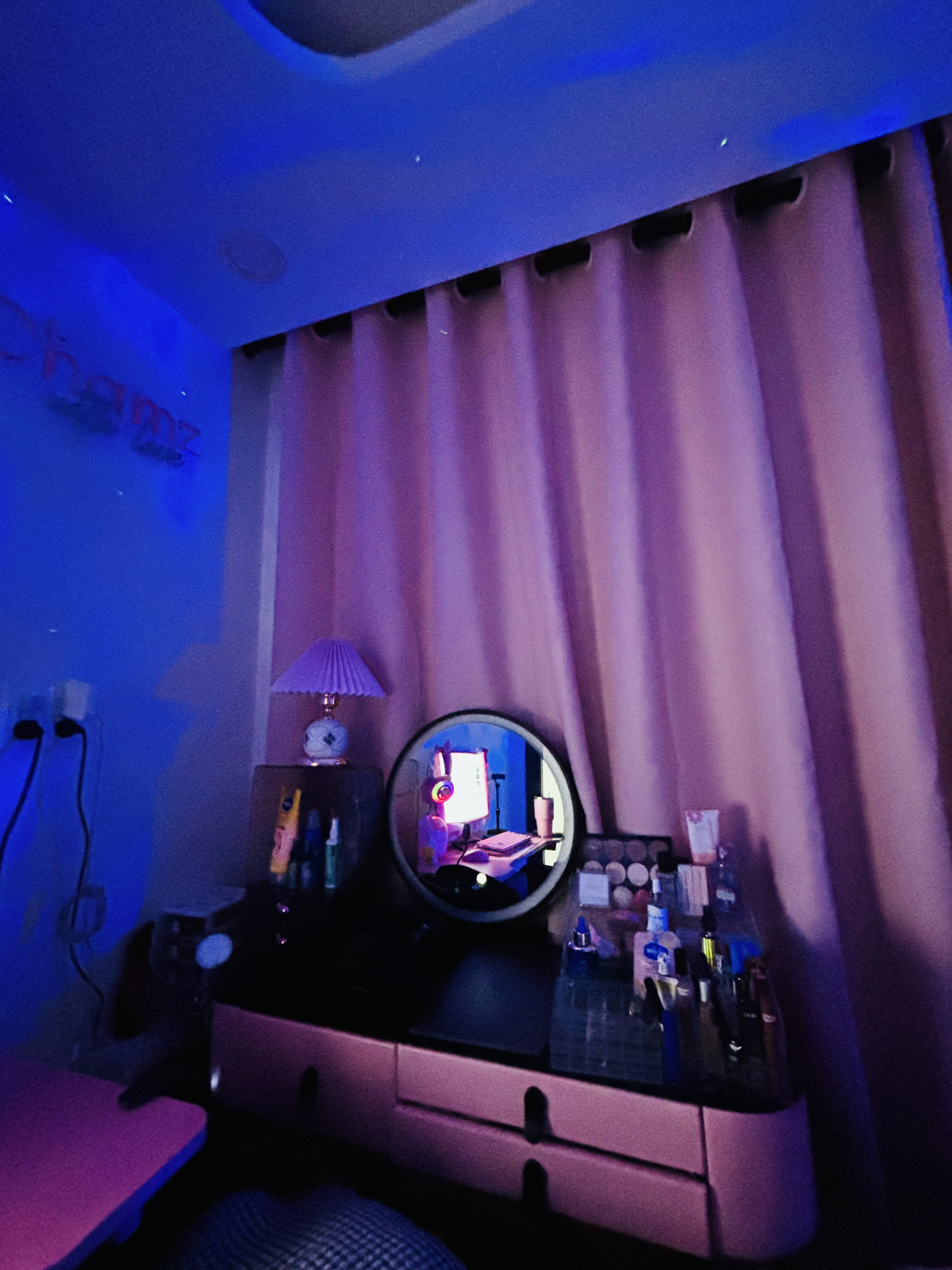 Điều Kim Trâm thích nhất trong căn nhà là giờ đây cô đã có phòng riêng để thoải mái decor theo ý thích của mình. Cô nàng biến phòng ngủ của mình thành một căn phòng màu hồng, bằng cách phủ kín một mảng tường với rèm hồng, đặt tủ và bàn trang điểm màu hồng. Bên cạnh đó, cô còn đặt nguyên một kệ toàn gấu bông. “Lần đầu tiên trong đời mình có phòng riêng. Ngày trước, hai chị em mình toàn phải ngủ ở phòng khách, nên khi được tự thiết kế căn phòng của mình, cảm xúc khó tả lắm”, Kim Trâm chia sẻ.