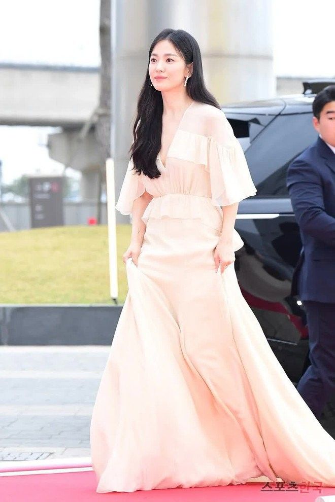 Dẫu vậy, mỗi lần xuất hiện, Song Hye Kyo vẫn tạo nên "cơn địa chấn" truyền thông. Thiết kế mới đây nhất chính là cú "F5" phong cách của mỹ nhân xứ Kim Chi. Nếu là 1 fan cứng của thời trang, có lẽ nhiều người sẽ thấy chi tiết "giả lộ" - may giả áo ngực của quý cô rất quen. Mỹ nhân họ Song đã "phong ấn" cả thảm đỏ chỉ vì chi tiết này. Trước đó, item màu nude có phần cúp ngực tương tự này đã từng khiến nhiều ngôi sao Việt 1 phen lao đao.