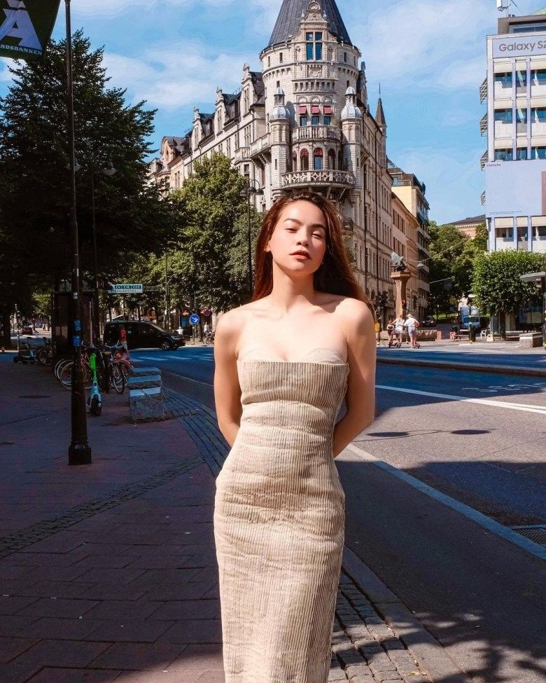 Song người diện món đồ xu hướng này sớm nhất trong dàn mỹ nhân Việt phải kể đến Hồ Ngọc Hà. Bà mẹ đông con từng mặc item này về quê chồng chơi. Cô xuống phố với thiết kế không thể gợi cảm hơn.