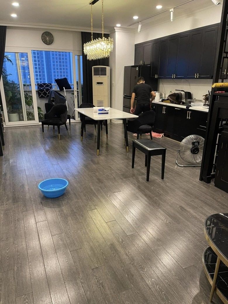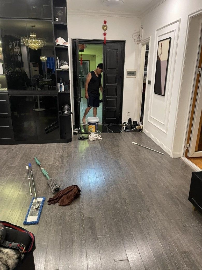 Thế nhưng mới đây Minh Quân cho biết anh đang bực mình về việc thợ lắp đường ống nước không đúng khiến nước rò rỉ ra ngoài. Việc này khiến căn hộ của anh bị ngập nước, và anh phải lau dọn nhà mất 3 tiếng đồng hồ. Đáng nói, toàn bộ sàn gỗ trong nhà bị ngâm nước và phồng rộp, bắt buộc phải thay mới lại.