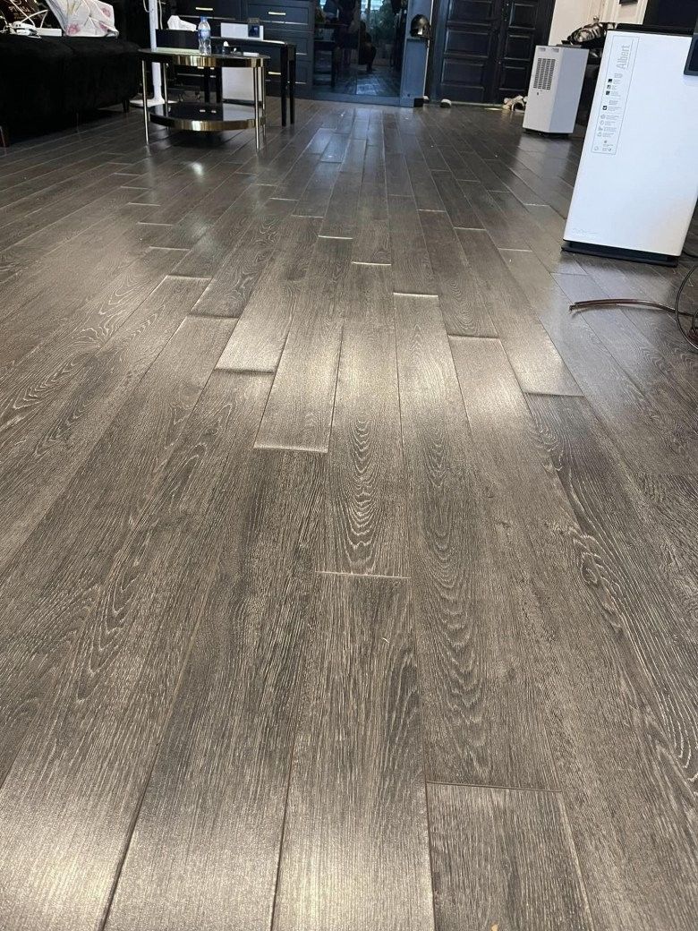 Toàn bộ sàn gỗ ngậm nước, phồng rộp và phải thay mới toàn bộ.