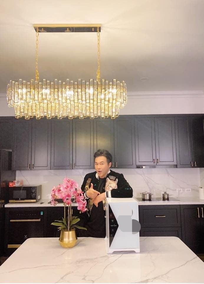 Trong phòng khách và phòng bếp, nam ca sĩ còn treo những chiếc đèn chùm cỡ lớn, tạo hiệu quả ánh sáng và trang trí rất đẹp.