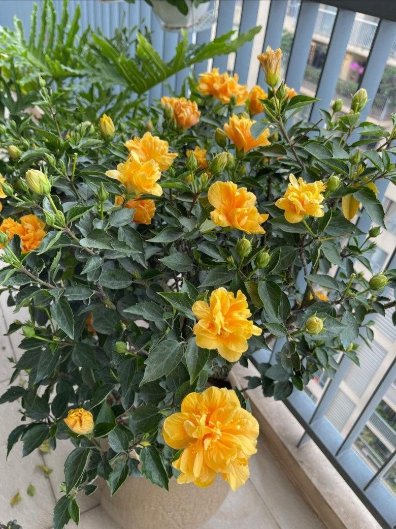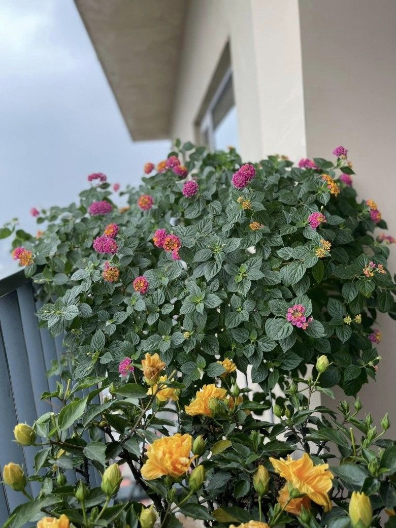 Ngoài ban công ngập sắc hoa, chuẩn bị đón Tết nguyên đán.