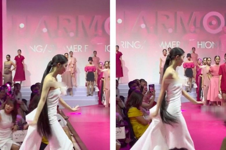 Tuy nhiên, có lẽ vẫn còn có chút hồi hộp nên gần cuối đường runway, Phương Nhi đã bị trượt chân và loạng ngay trên sàn diễn.