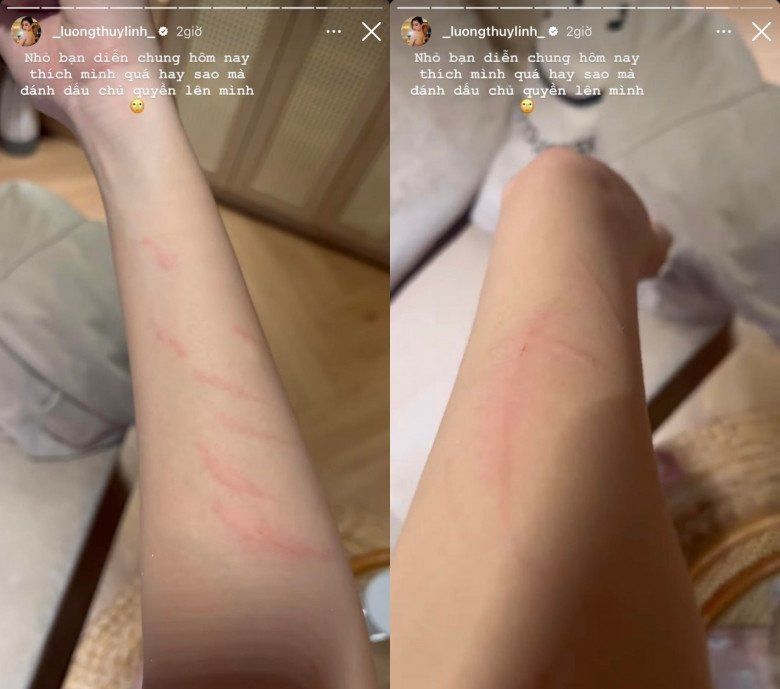 Sự không hợp tác của "người bạn 4 chân" đã gây ra nhiều vết trầy trên tay của Lương Thuỳ Linh.