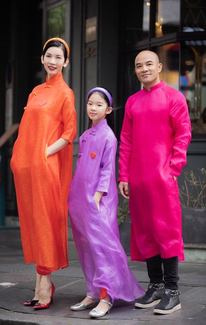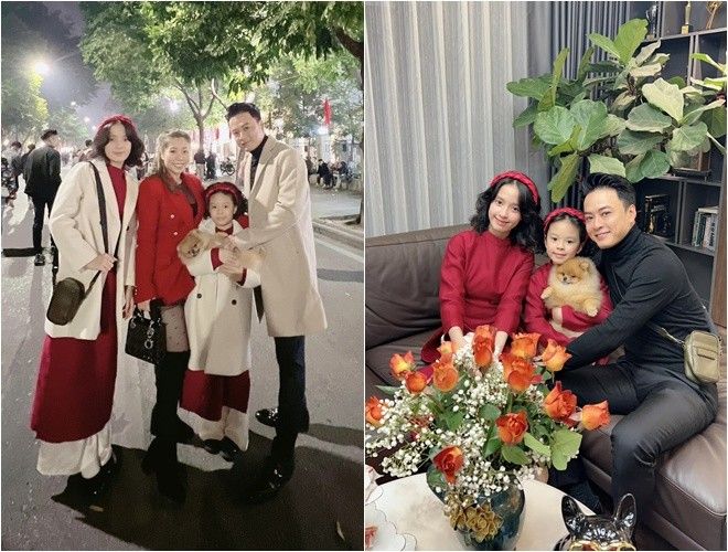 Sáng mùng 1 Tết, "đại gia phố núi" Cường Đô La và vợ con cùng diện áo dài rực rỡ để chụp ảnh đón năm mới. Cô bé Suchin cực tươi tắn, đáng yêu trong những bức hình. Còn anh trai Subeo được mẹ kế Đàm Thu Trang ôm, nắm tay tình cảm.