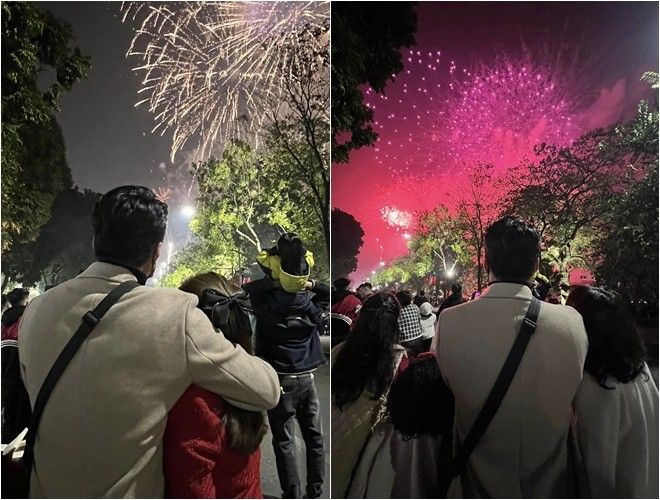 Diễn viên Hồng Đăng chia sẻ khoảnh khắc ra đường xem pháo hoa đón Giao thừa, thắm thiết ôm vợ và 2 ái nữ của mình. Anh bày tỏ niềm hân hoan: "Chúc mừng năm mới…. Gia đình cháu chúc cả nhà năm mới bình an và luôn hạnh phúc. Cảm ơn vì tất cả".