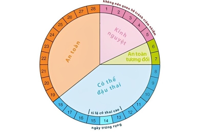 - Xác định chu kỳ kinh nguyệt: Chu kỳ trung bình là 28 ngày (tính từ ngày đầu tiên của kỳ kinh này đến ngày đầu tiên của kỳ kinh sau). Nếu chu kỳ dài hay ngắn hơn, vẫn áp dụng tương tự nhưng điều chỉnh số ngày.