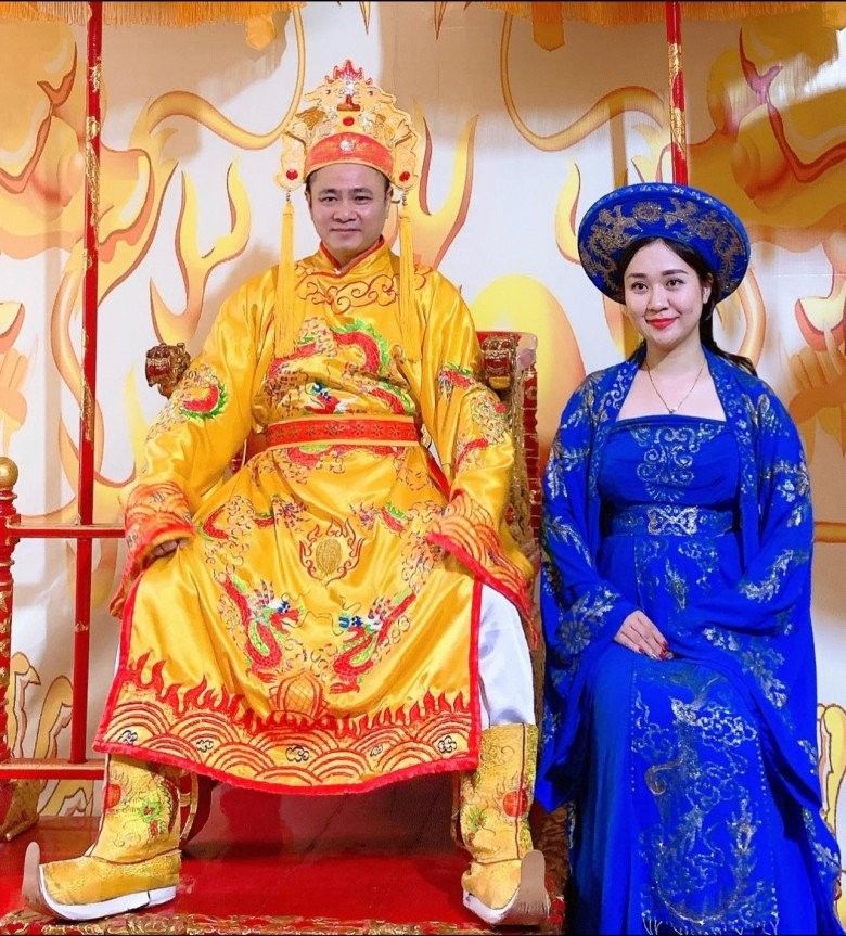 Bên cạnh đó, anh cũng khoe bức hình mới của hai vợ chồng khi Tự Long trong trang phục của một bậc quân vương, còn Minh Nguyệt cũng sánh đôi với bộ đồ cổ trang rất hợp với chồng. Nam danh hài bày tỏ: "Quân vương và thiếp/ Tám năm ràng dọn về ở với ta/ Vào ngày 7/5 chiến thắng Điện Biên".