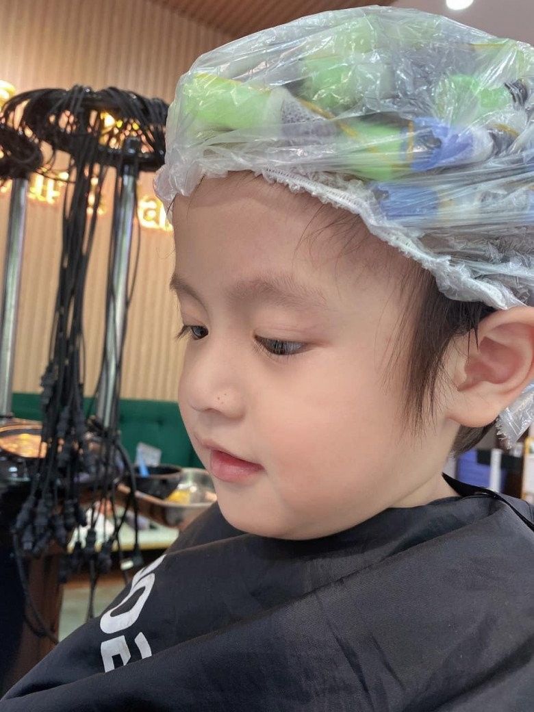 Thời gian qua, cậu ba nhà diễn viên Thanh Thúy - Đức Thinh thường xuất hiện với kiểu tóc "đầu nấm", trông rất hiền lành và đáng yêu. Với kiểu tóc xoăn mới, nhóc tỳ ra dáng "soái ca" Hàn Quốc, có phần cool ngầu hơn. Theo dõi gia đình Thanh Thúy mới thấy vợ chồng cô rất chăm thay đổi kiểu tóc cho con. Có khi uốn xoăn tít, có khi để xoăn lơi hay nuôi dài và cột chỏm.