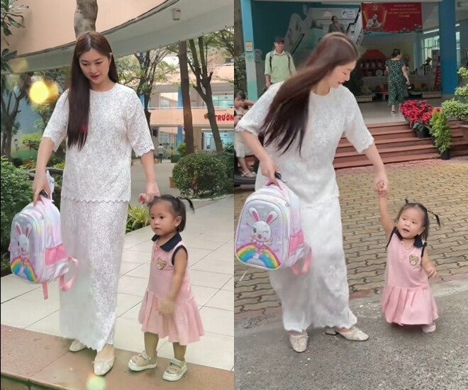 Trên trang cá nhân, Thanh Trúc vừa chia sẻ đoạn video ghi lại hình ảnh nữ diễn viên đi đón con gái tan học ở trường mẫu giáo. Cô một tay cầm balo, một tay dắt con gái. Nhóc tì Kỳ Kỳ tỏ rõ vẻ háo hức, vừa đi vừa nghịch ngợm.