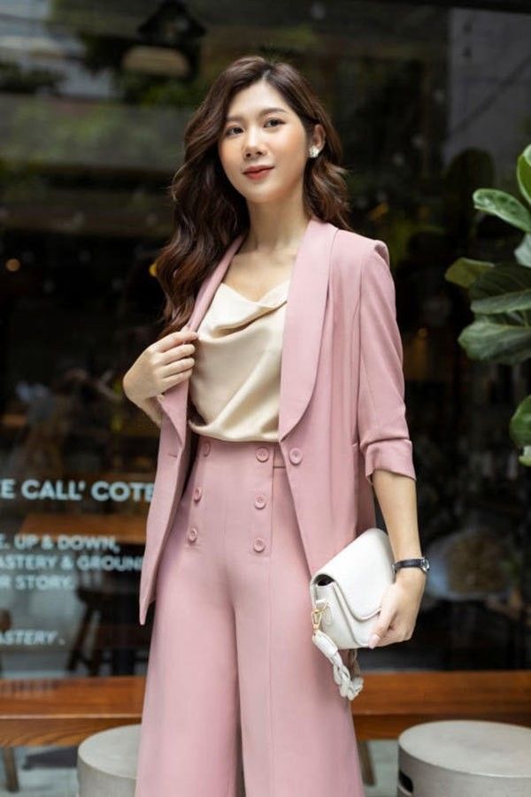 Khi mặc những kiểu áo có phần cổ khoét sâu và khá hở hang, các nàng có thể phối với áo vest/ blazer công sở.