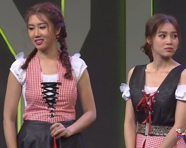Tại đây, các đồng nghiệp cũng thường xuyên trêu chọc cân nặng của nữ diễn viên. Ninh Dương Lan Ngọc từng buột miệng: "60kg, nghệ sĩ nữ mà nặng 60kg", sau đó cô đã xin lỗi và cho biết vì mình bất ngờ quá.