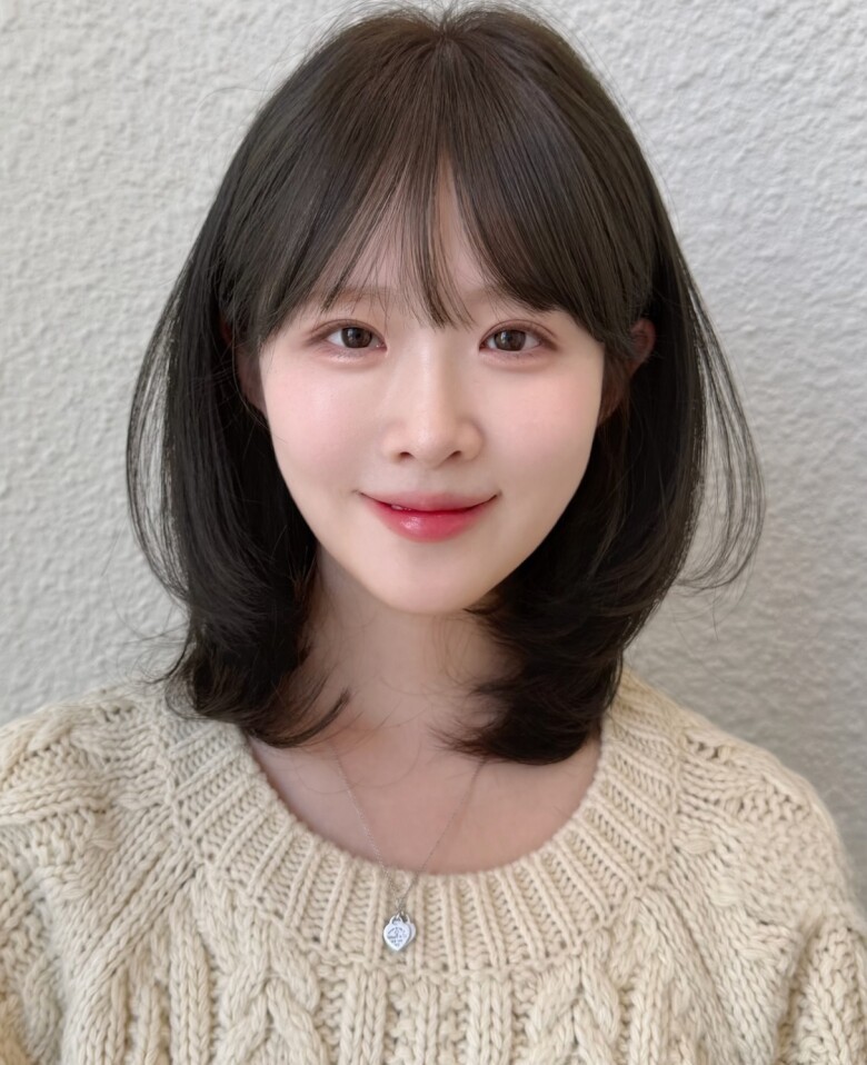 Kiểu tóc này tạo hiệu ứng gương mặt thanh thoát, đồng thời giúp tổng thể trở nên nổi bật hơn mà không cần tạo kiểu cầu kỳ. Chỉ cần sấy nhẹ phần đuôi là tóc đã có độ phồng tự nhiên. Đây là lựa chọn hoàn hảo cho những ai muốn làm mới phong cách.