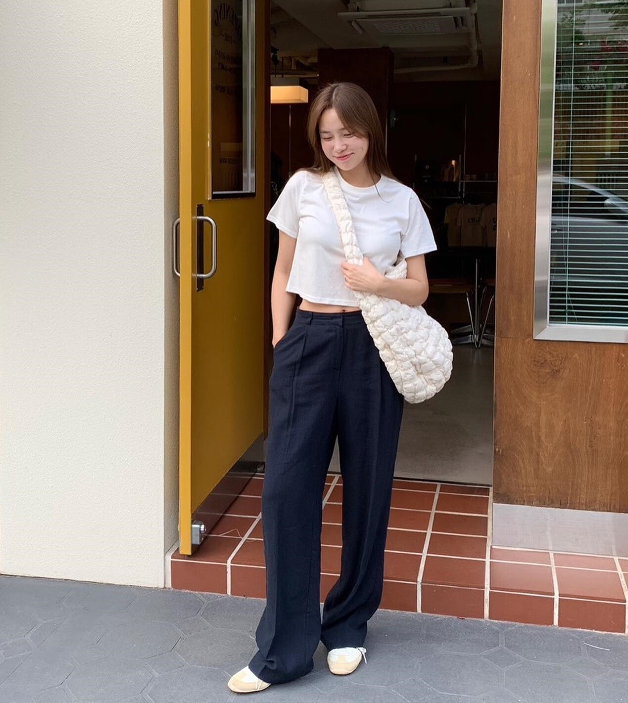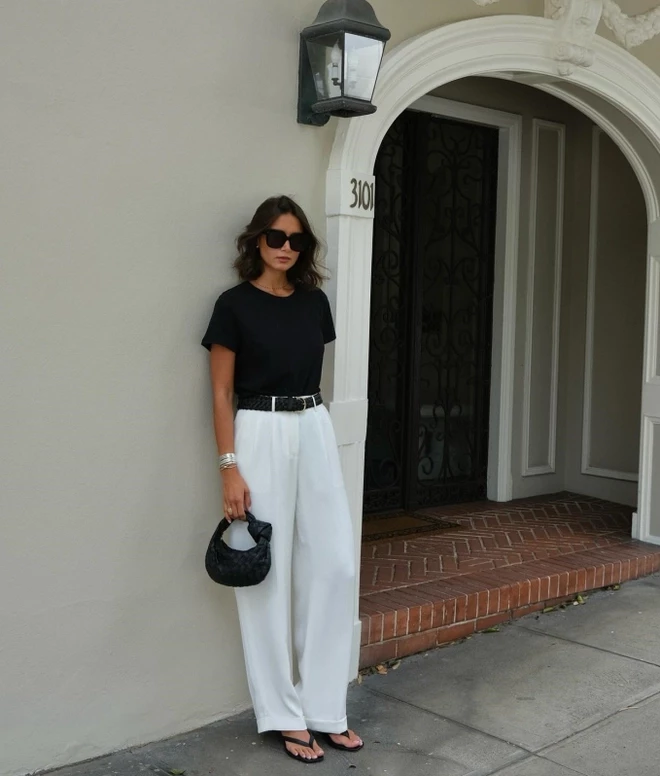 Điều quan trọng khi chọn quần trắng là chất liệu đủ dày để tránh lộ nội y và giữ phom đứng. Một chiếc quần trắng chuẩn chỉnh có thể trở thành “vũ khí” giúp outfit trông cao cấp ngay lập tức.