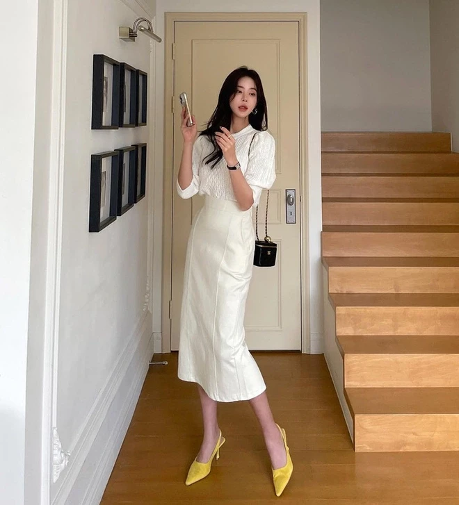 Gam trắng còn giúp làn da trông sáng hơn, đặc biệt khi chọn sắc trắng ngà hoặc trắng kem thay vì trắng tinh quá gắt. Đây là item lý tưởng cho những ngày xuân - hè đầy nắng.