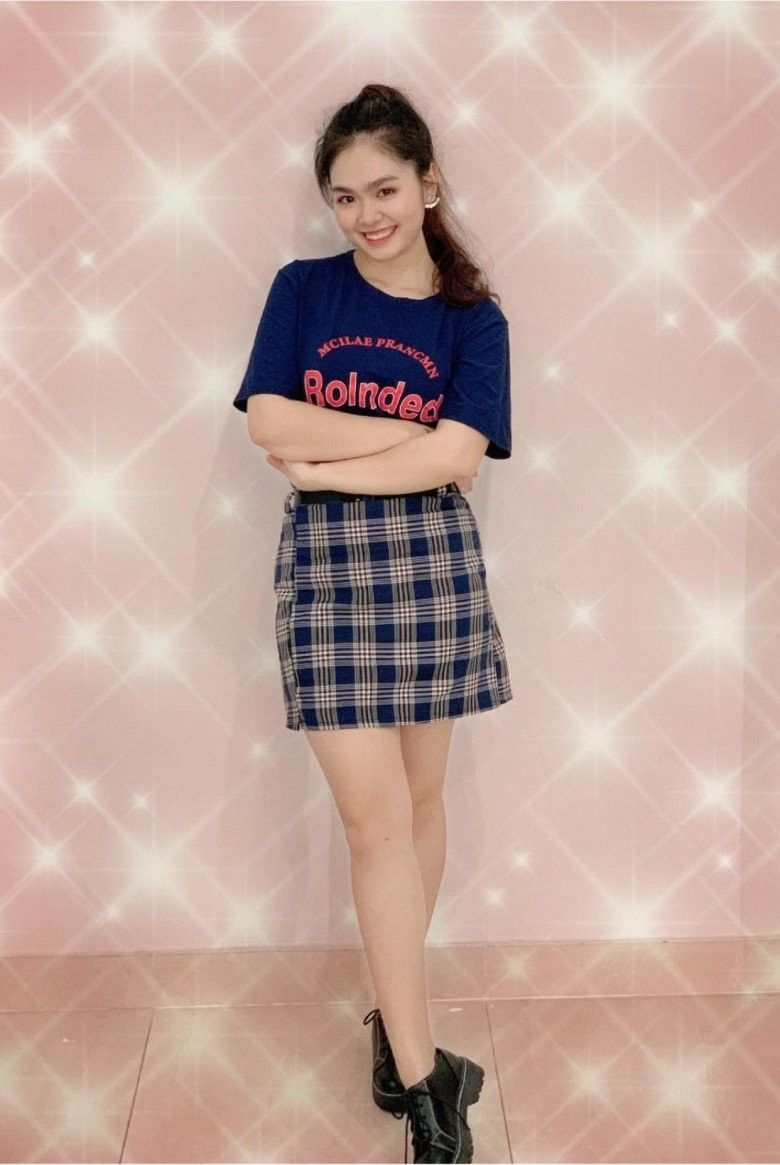 Thiện Nhân cũng thường diện những outfit nhí nhảnh đúng lứa tuổi. Những chiếc chân váy caro được cô nàng lựa chọn để kết hợp với áo thun, mang đến một outfit năng động, trẻ trung.