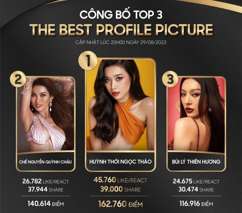 Tầm ảnh hưởng của Huỳnh Thới Ngọc Thảo trong cuộc thi nhan sắc này dù chỉ là "tấm chiếu mới". Cô thu về lượng tương tác cho tấm hình profile của mình với số lượng like gấp đôi Chế Nguyễn Quỳnh Châu hay Bùi Lý Thiên Hương.