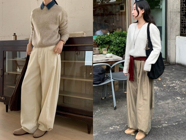 5. Quần ống rộng màu be