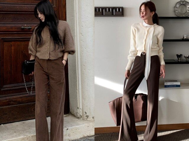 So với màu đen, quần ống rộng màu nâu tạo cảm giác mềm mại và thời trang hơn, đặc biệt khi kết hợp cùng các gam màu trung tính như trắng, be hoặc kem. Kiểu quần này phù hợp với nhiều độ tuổi, dễ mặc và giúp tủ đồ trông có chiều sâu hơn mà không cần đầu tư quá nhiều item cầu kỳ.