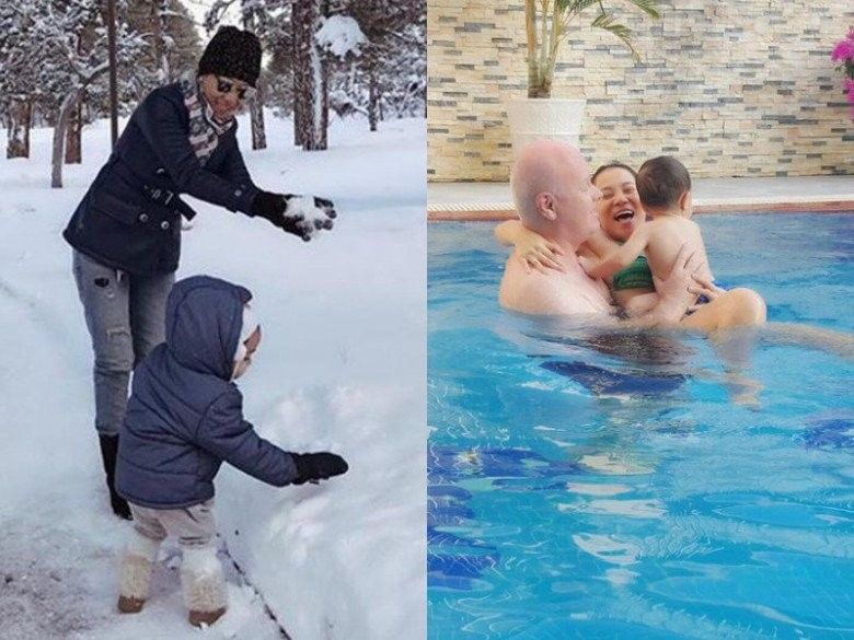 Trong nhiều bức ảnh chụp với mẹ hồi đầu năm 2023, quý tử được khen thấy rõ nét lai Tây dù không lộ mặt.