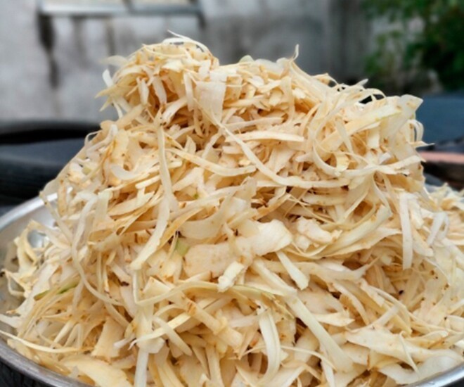 Để làm ra 1kg mứt thành phẩm, người thợ phải dùng tới 7–8kg củ đinh lăng tươi. Lý do là trong quá trình sơ chế, chỉ phần rễ mềm, non, không có tia gỗ mới được giữ lại; những đoạn già, xơ cứng đều bị loại bỏ. Nguyên liệu phải là giống đinh lăng lá nhuyễn trên 5 năm tuổi mới đạt yêu cầu về độ thơm và vị ngọt tự nhiên. Chính sự chọn lọc kỹ lưỡng ấy khiến sản lượng mứt không cao, nhưng bù lại chất lượng vượt trội, khác biệt hoàn toàn so với các loại mứt thông thường.