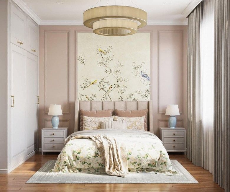 Phòng ngủ của mẹ Diệp Lâm Anh với màu sắc nhã nhặn, bên trong còn có một bộ bàn ghế nhỏ để ngồi thưởng trà.