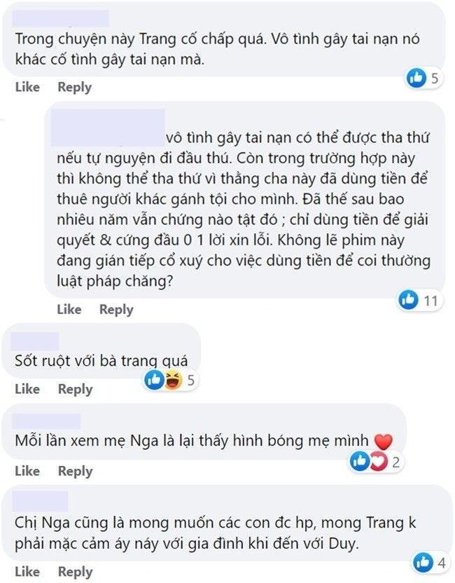 Sau khi trích đoạn trên được tung ra, cộng đồng mạng đã nổ ra tranh cãi về chuyện liệu Trang đã quyết định đúng khi buông bỏ tình cảm với Duy. Đành rằng ông Long là thủ phạm hại chết ông Mậu nhưng vụ tai nạn đó chỉ là vô ý, và Duy hoàn toàn không có lỗi trong chuyện năm xưa. Hơn nữa bà Nga đã chấp nhận tha thứ, vì muốn con cái được hạnh phúc. Nhưng cách Trang chọn lựa lại khiến tất cả mọi người không ai vui vẻ.