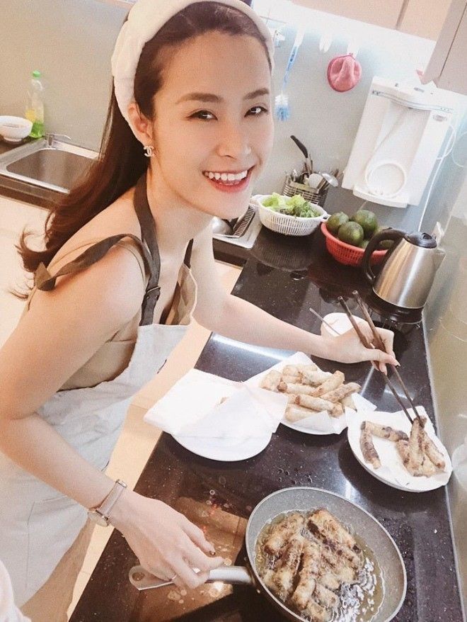 Trong một khoảnh khắc Hồ Ngọc Hà đăng tải trên trang cá nhân, nữ ca sĩ cùng con gái Lisa ngồi trên kệ bếp và có kèm chú thích: "Bếp đã trở nên là nơi thích nhất của mình".