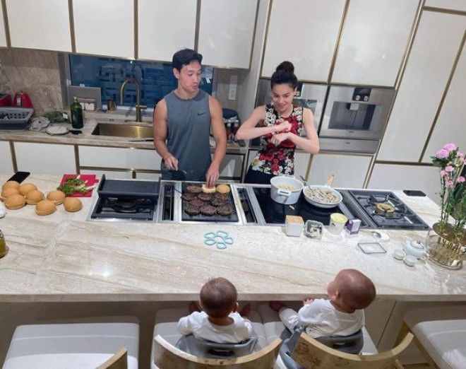 Hồ Ngọc Hà từng tiết lộ, Kim Lý từng hứa khi chuyển qua nhà mới sẽ nấu ăn mỗi ngày nên căn bếp được làm rất "hoành tráng" và quả thực đến nay ông xã của cô đã thực hiện được lời hứa đó.