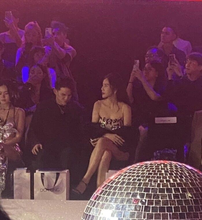 Trong suốt quá trình tham dự show thời trang, Thủy Tiên ngồi một mình, tập trung hướng mắt về sàn diễn.