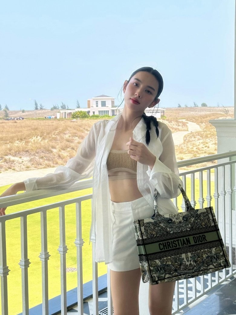 Nàng hậu cũng đọ đường cong cực gắt với Đỗ Mỹ Linh và Tiểu Vy khi đi du lịch biển.