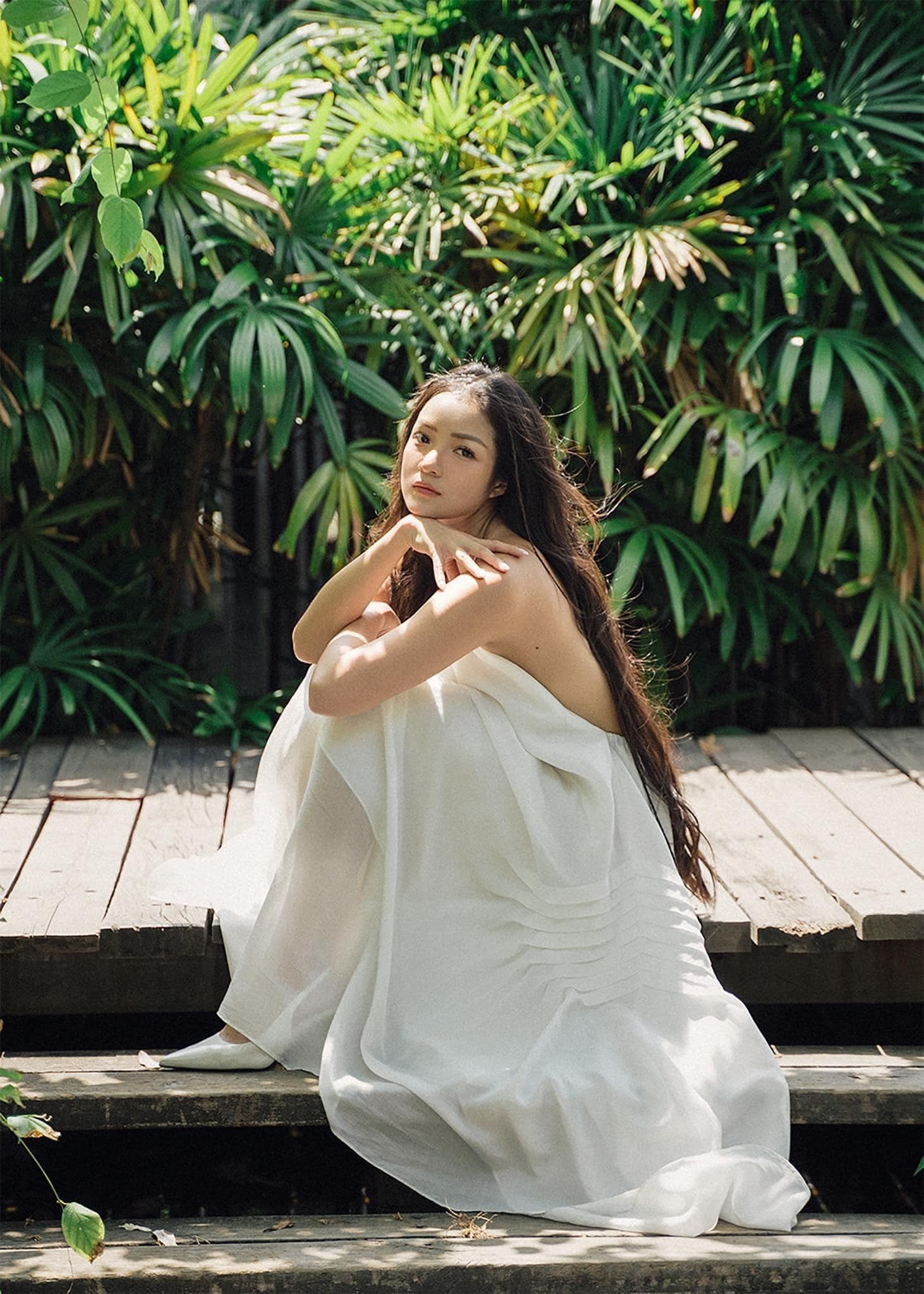 Người đẹp mơ màng trong thiết kế đầm maxi trắng trong nắng vàng.