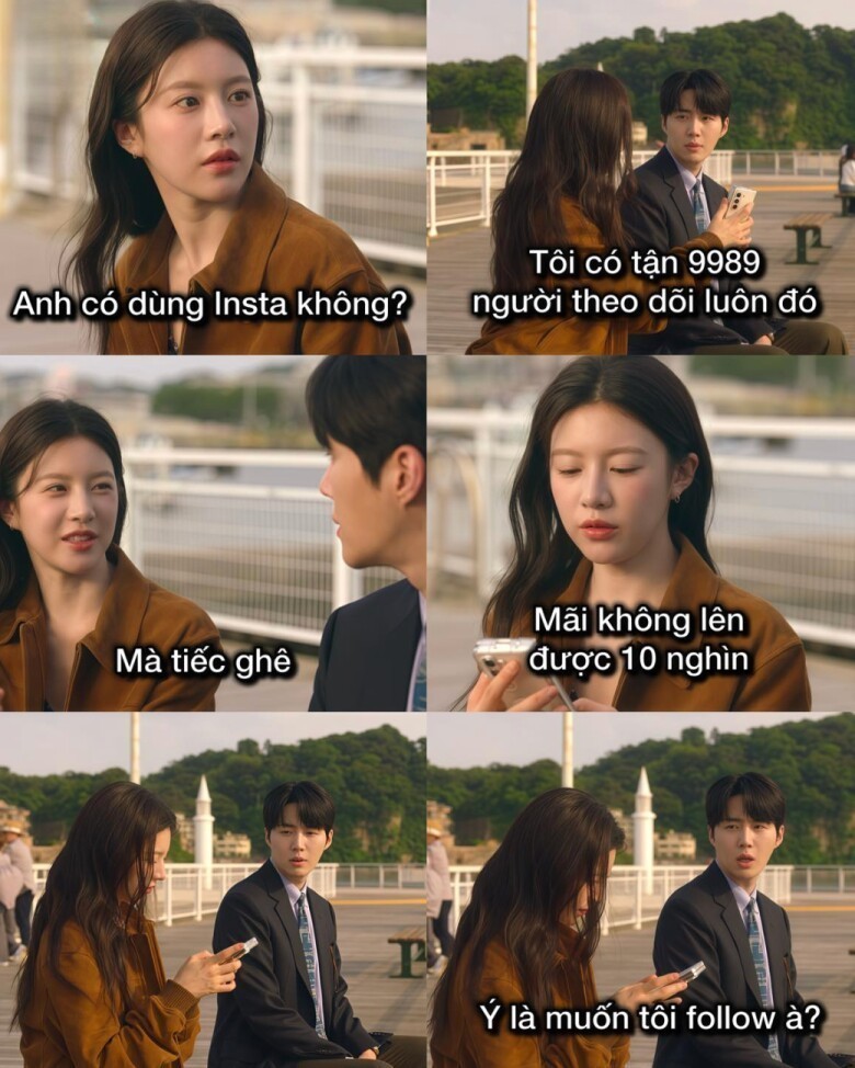 Thoạt nhìn bề ngoài, Mu Hee hóm hỉnh, đầy năng lượng và quyết liệt trong tình yêu. Cô chủ động theo đuổi nam chính Ho Jin, rơi vào vô số tình huống “quê xệ” trước mặt “crush” khiến khán giả vừa thương vừa buồn cười: bị Ho Jin phát hiện đang “stalk” (rình mò) mạng xã hội của người anh thích, bị từ chối, bị anh thấy cảnh nổi loạn với đối tác và thậm chí là “cuỗm” đồ cũng bị phát hiện…