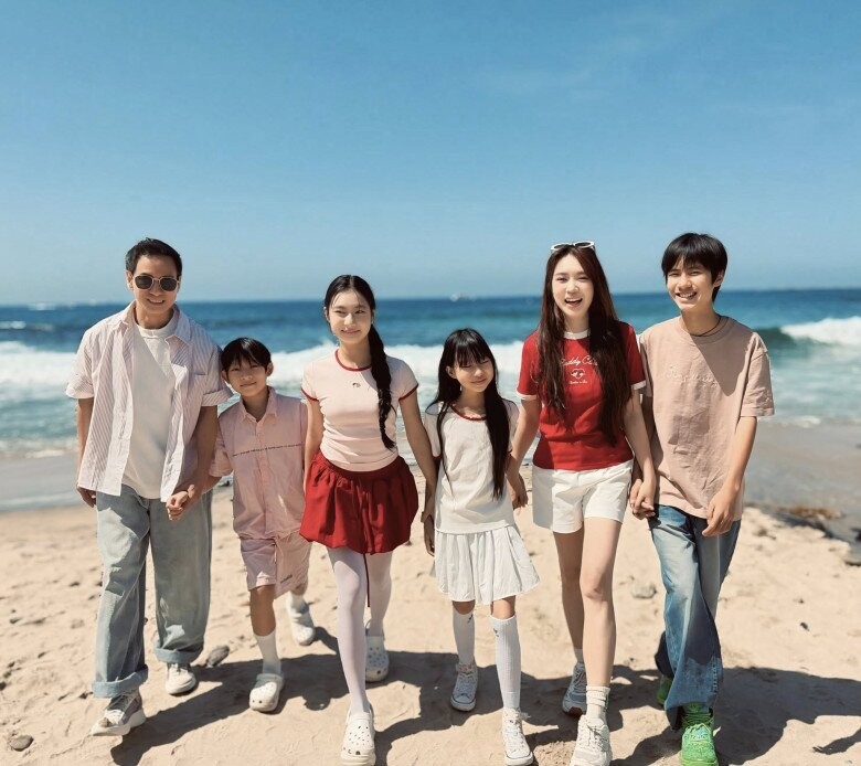 Mới đây, bà xã đạo diễn trăm tỷ Lý Hải khoe loạt ảnh chụp cùng gia đình tại bãi biển, thu hút sự chú ý từ cộng đồng mạng. Gia đình 6 thành viên, bố mẹ và các ái nữ, quý tử đều sở hữu ngoại hình ưa nhìn. Tiểu thư Hà Thành - Minh Hà khiến dân tình không ngớt lời khen, ở tuổi U50 và làm mẹ 4 con nhưng trẻ trung hệt thiếu nữ 18.