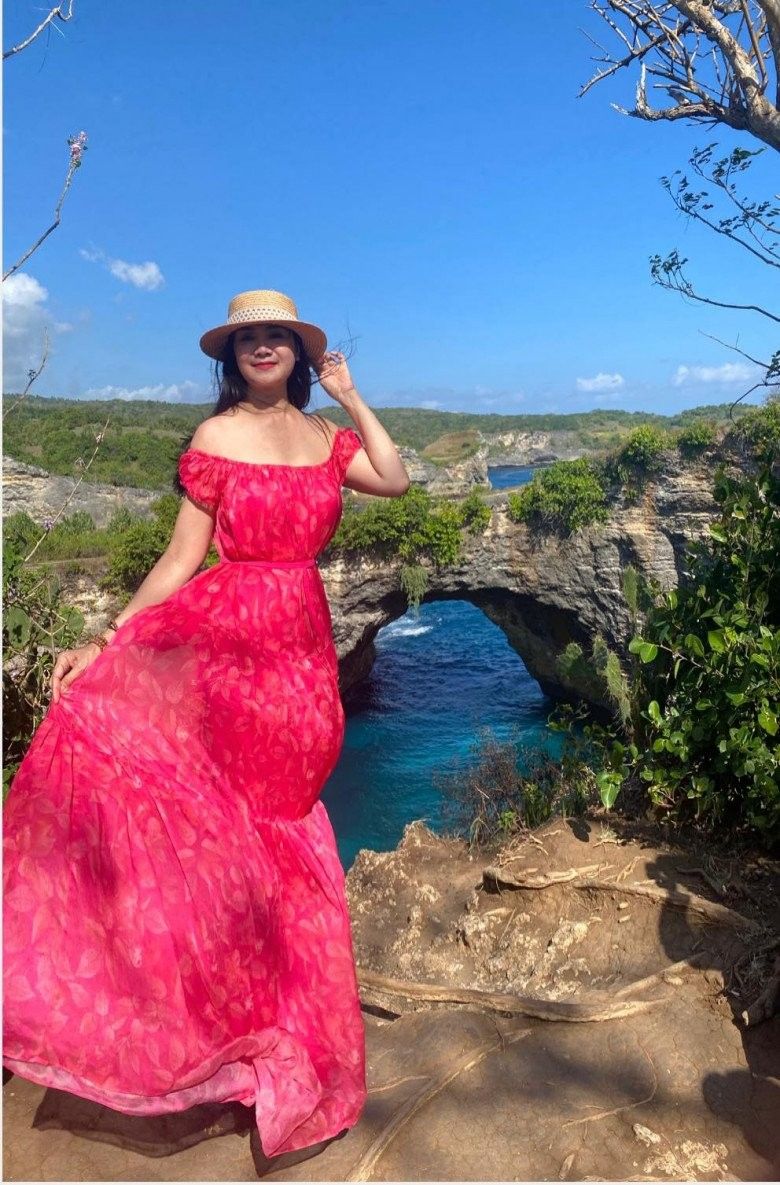 Trong những chuyến du hí, cô cũng trưng dụng váy hoa. Nhưng cô thay đổi bằng những bộ váy maxi dài chấm đất với màu sắc nổi bật. Đây quả thật luôn nằm trong first list của bao cô nàng khi đi biển.