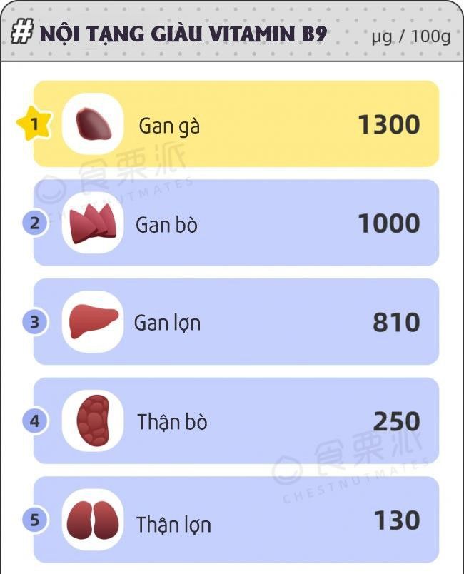 Gan có lẽ là nơi có nhiều vitamin B9 nhất trong toàn bộ thực phẩm.