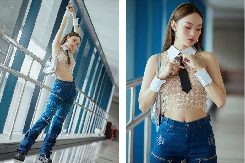 Minh Hằng cũng thường dùng những kiểu áo croptop để khoác ngoài kèm với những item bodycon, giúp cô thoải mái vận động mà không sợ "lộ hàng", tránh những tình huống nhạy cảm.