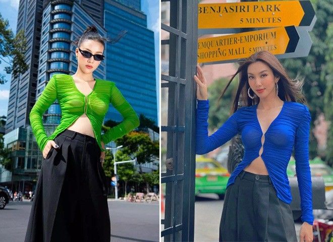 Kiểu dáng này trước đó cũng được Thùy Tiên và hot mom Hoàng Oanh lăng xê. Tuy nhiên, Minh Hằng táo bạo hơn gấp bội phần, thay vì chiếc áo có 3 cúc như Thùy Tiên và Hoàng Oanh, mỹ nhân Chị Chị Em Em "đốt mắt" bao người với chiếc áo chỉ vỏn vẹn 1 chiếc nút áo.