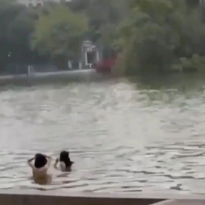 Hình ảnh 2 người tắm ở hồ Gươm lan truyền mạng xã hội. Ảnh chụp màn hình
