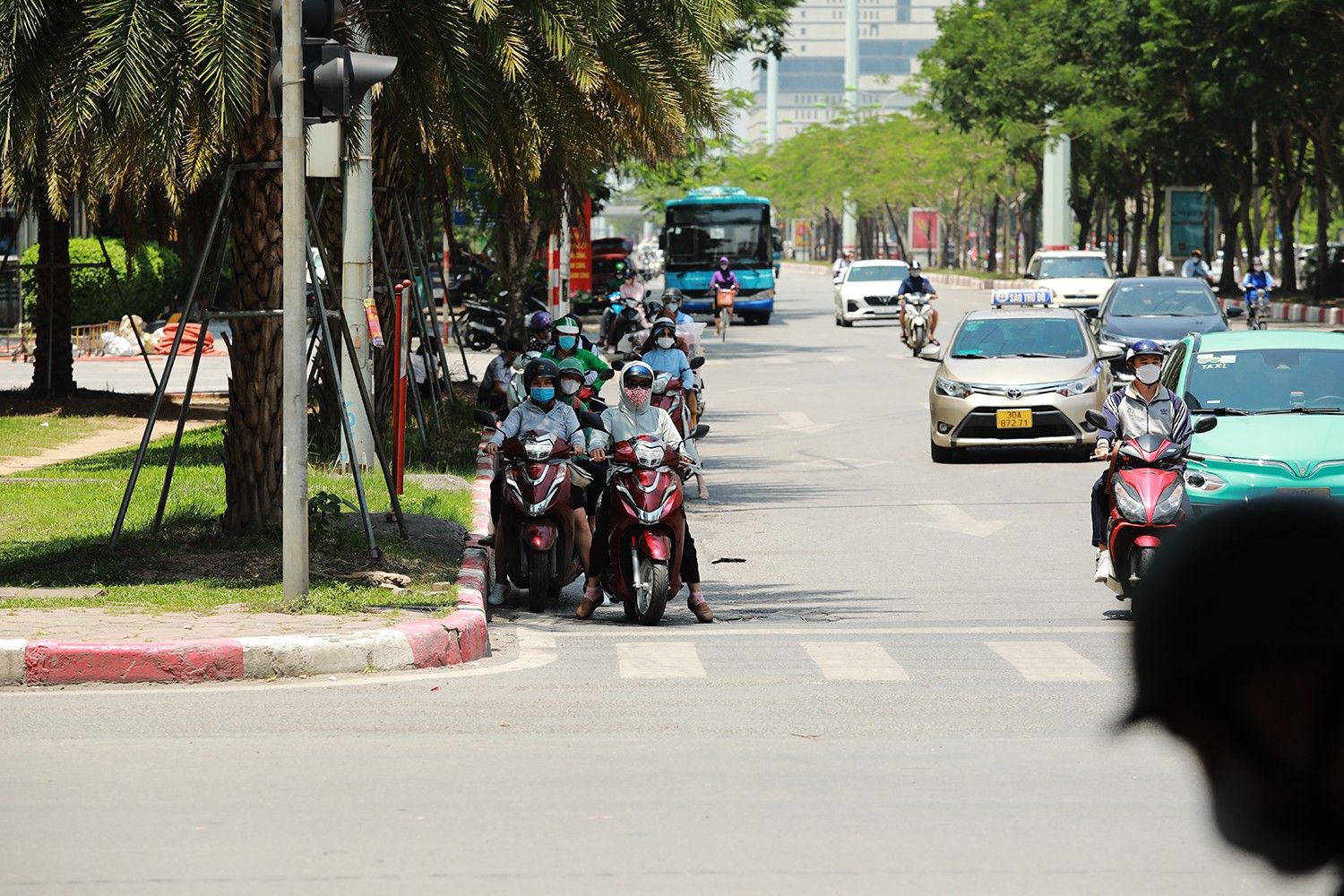 Theo ghi nhận của phóng viên, từ 10h sáng 17/5, nhiệt độ ngoài trời ở Hà Nội đã đặt ngưỡng 37-39 độ C. Càng về trưa, nhiệt độ tăng cao, có nơi lên tới hơn 40 độ C.Thời tiết nắng nóng khiến những người tham gia giao thông phải dùng mọi cách để “giảm nhiệt”. Hình ảnh người dân đi trên Đại lộ Thăng Long giữa cái nóng như chảo lửa.