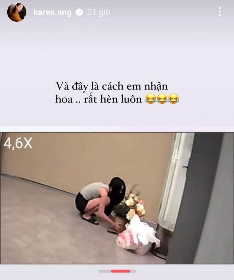 Mới đây, nhân dịp 8/3, Karen đã hé lộ cách đối xử của chồng trong ngày đặc biệt. Nữ diễn viên cho biết: "Chồng nói với vợ được các hãng tặng quà nhiều rồi, chồng đỡ tặng... Nhưng cuối cùng vợ vẫn có hoa thật to. 8/3 đầu tiên em làm vợ, làm mẹ nên được sướng một tí ạ".