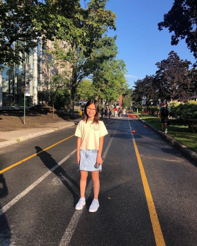 Cô bé cũng biết lợi thế của cơ thể nên rất biết cách phối đồ để làm nổi bật đôi chân cũng như vóc dáng thanh mảnh của mình.