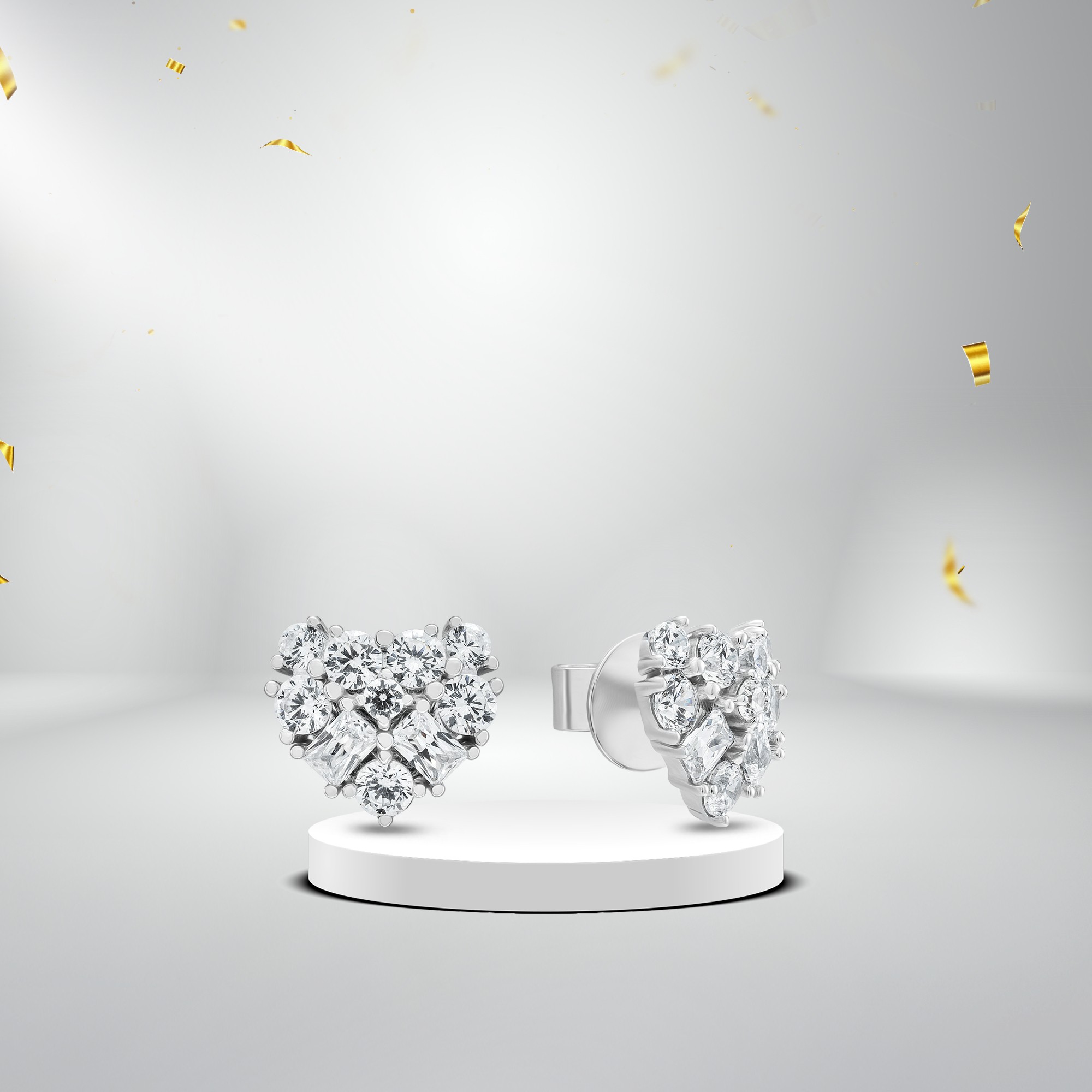 Bông tai dạng stud (thiết kế nhỏ gọn ôm sát tai) của PNJ là điểm nhấn dịu dàng giúp phong cách mùa lễ hội trở nên ngọt ngào và tinh tế. Với tạo hình trái tim cách điệu từ nhiều viên đá ECZ đa dạng giác cắt, ánh sáng được phản chiếu nhẹ nhàng, tôn lên đường nét khuôn mặt và mang đến vẻ đẹp mềm mại cho phái nữ.
