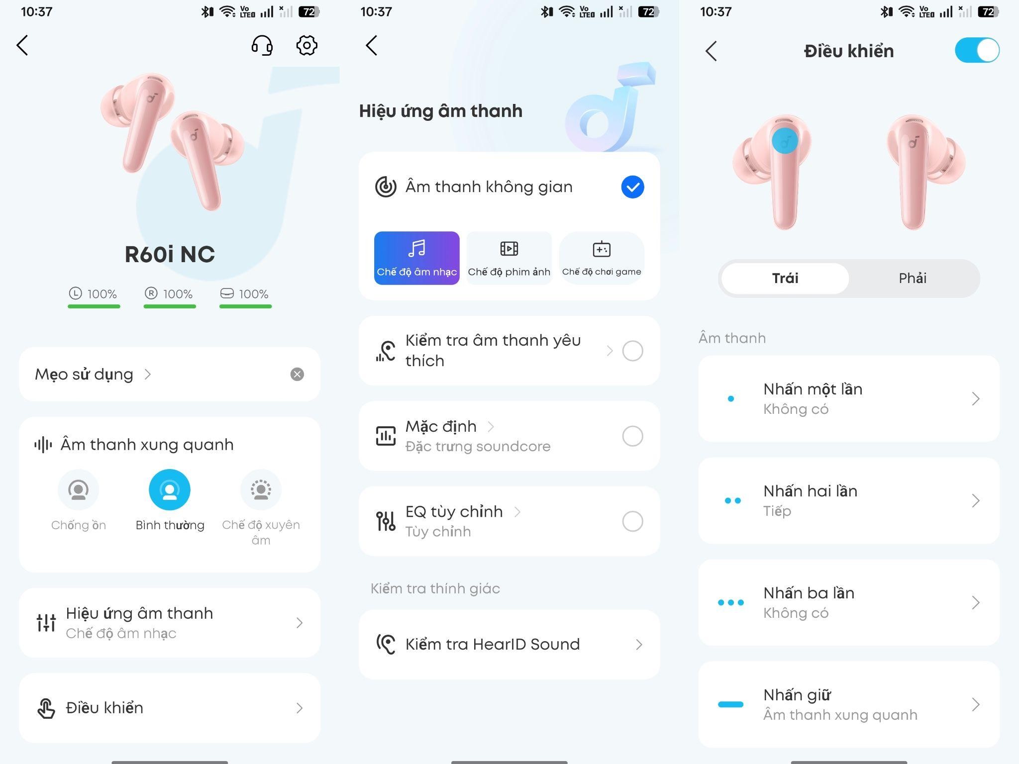 Cá nhân hóa: Thông qua ứng dụng soundcore, tính năng HearID 4.0 đã phân tích thính giác của tôi để tạo ra một biểu đồ EQ riêng biệt, như thể chiếc tai nghe này được "may đo" cho chính đôi tai mình vậy.
