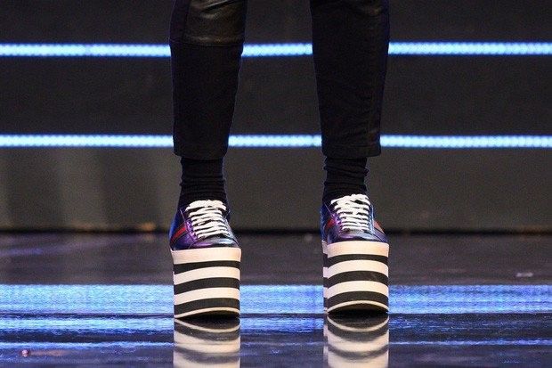Trước đây, có lần lên sóng, Trấn Thành khiến công chúng "ngã ngửa" với đôi giày đế độn tới 20cm. Anh chàng cũng từng suýt "vồ ếch" trên tivi vì món "cà kheo" khó nhằn này.