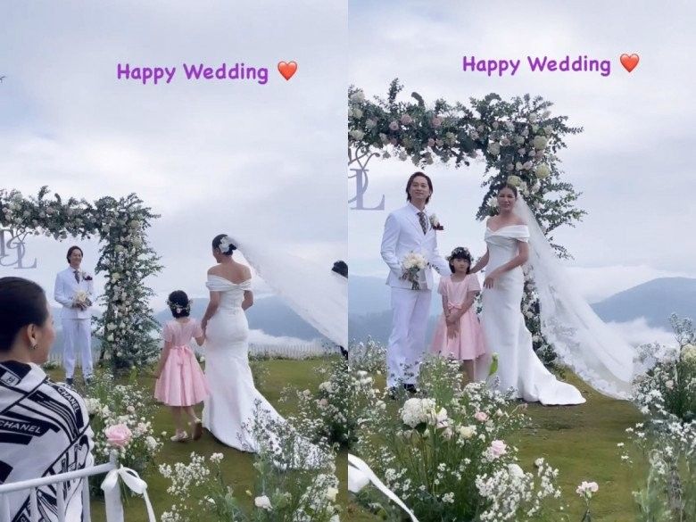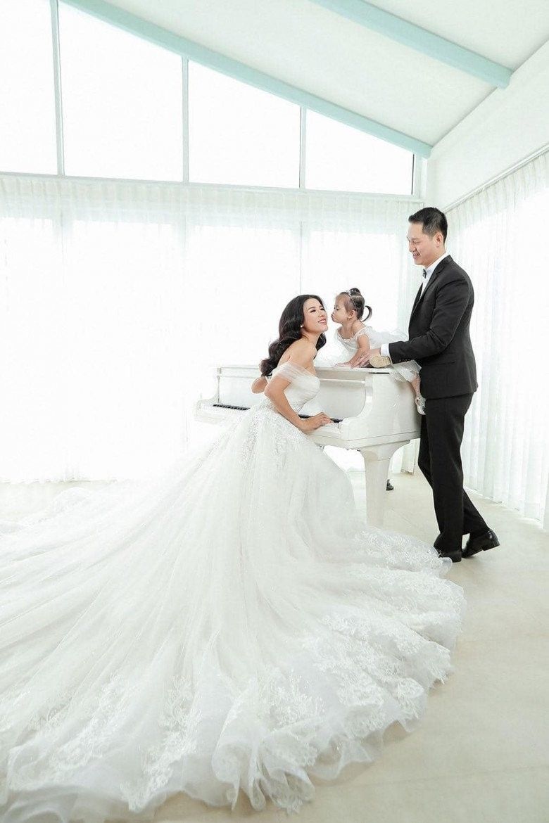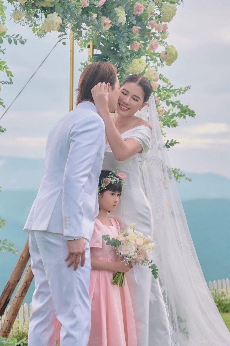 Đáng chú ý, con gái Kiến Lửa (8 tuổi) cũng chiếm spotlight khi là nhân vật chứng hôn cho đám cưới của bố mẹ. Trước đó, vào năm 2015 khi vừa chào đời, nhóc tì Kiến Lửa cũng có mặt trong bộ ảnh cưới chụp kỷ niệm của cặp đôi.