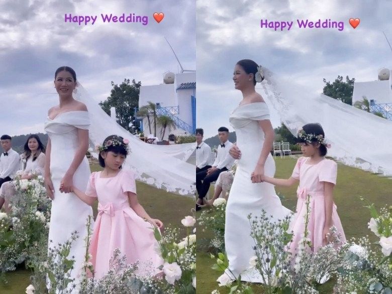 Trang Trần dắt tay con gái Kiến Lửa bước vào lễ đường.