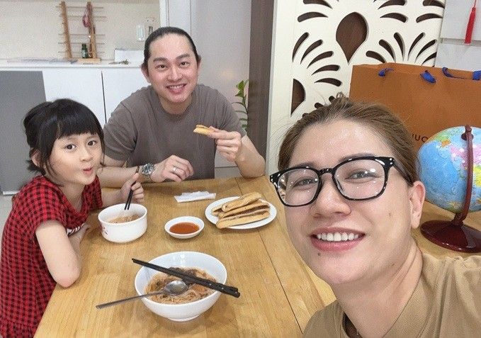 Hôm 24/5, chồng tôi đưa con gái tới lễ tổng kết năm học ở trường bé, Kiến lại được dịp giới thiệu bố với bạn học. Có ông xã chăm con, tôi thảnh thơi, không phải làm gì", Trang Trần chia sẻ.
